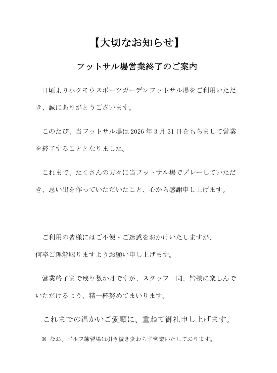 なお、お電話をいただいた際には、ホクモウスポーツガーデン指定管理会社の株式会社ワン・オールにつながります。ご了承ください。